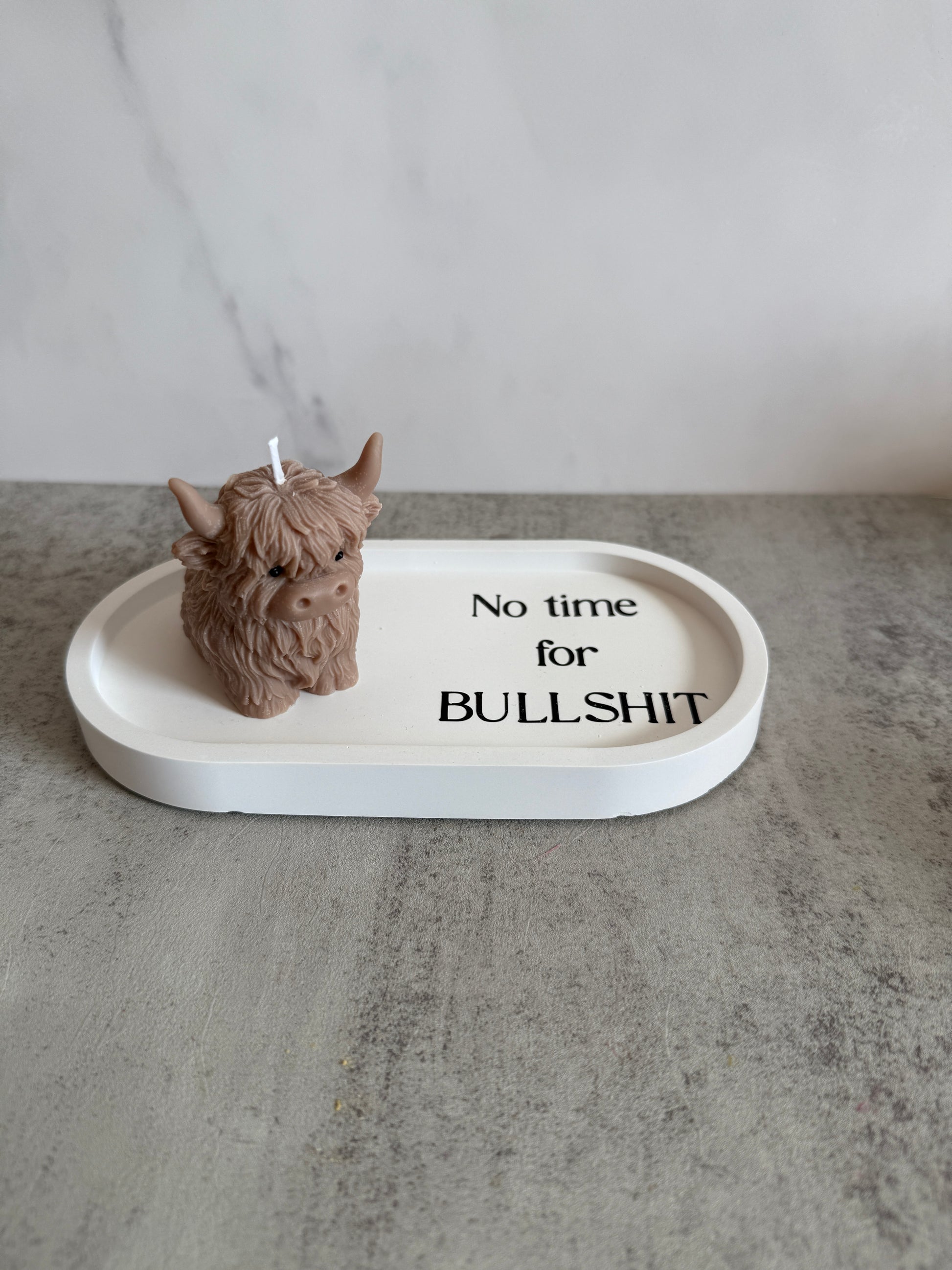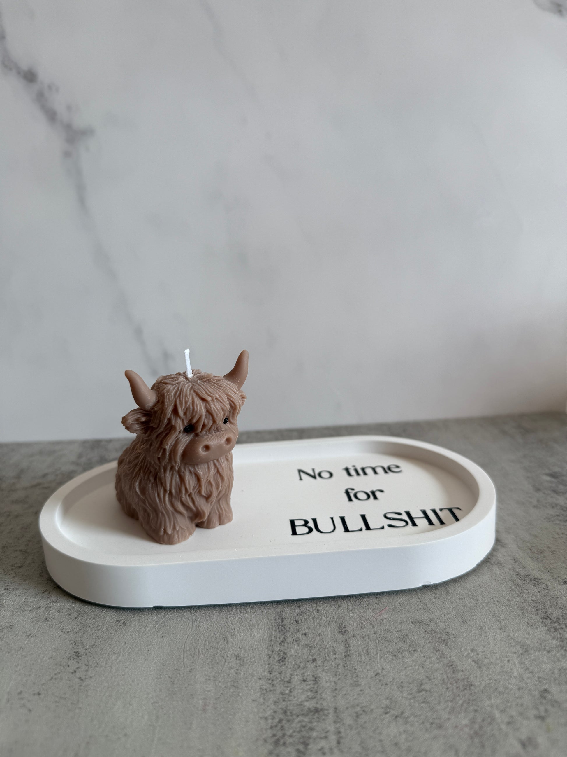 Pas le temps pour les conneries – Bougie Highland Cow avec dessous de verre