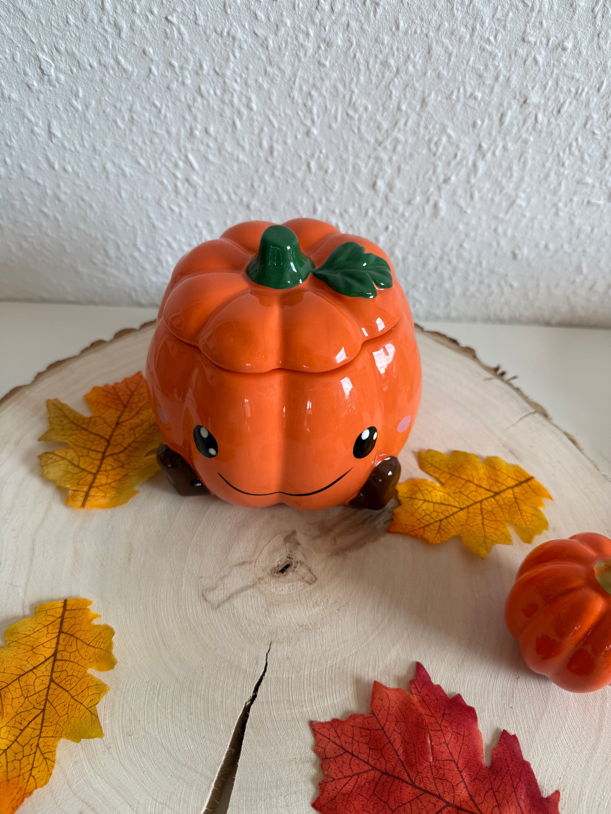 - Keramischer Kürbis – detailverliebt und mit fröhlichem Lächeln