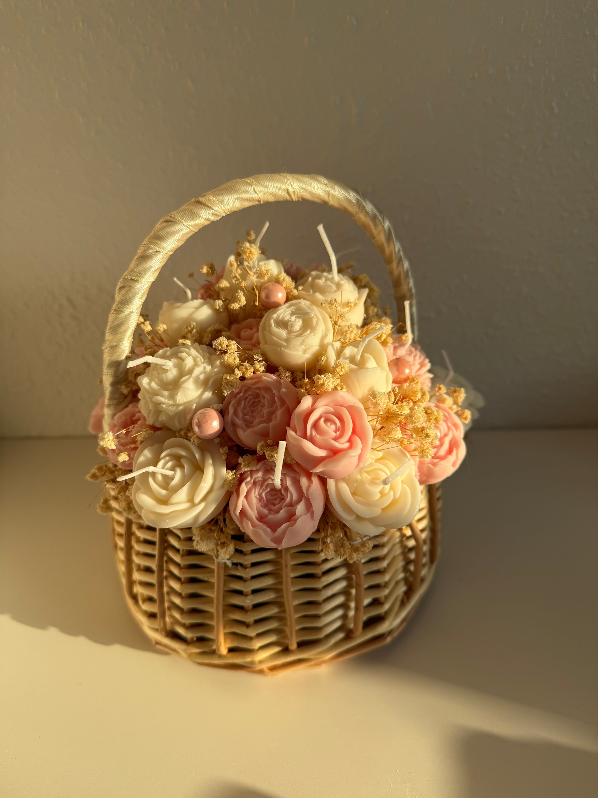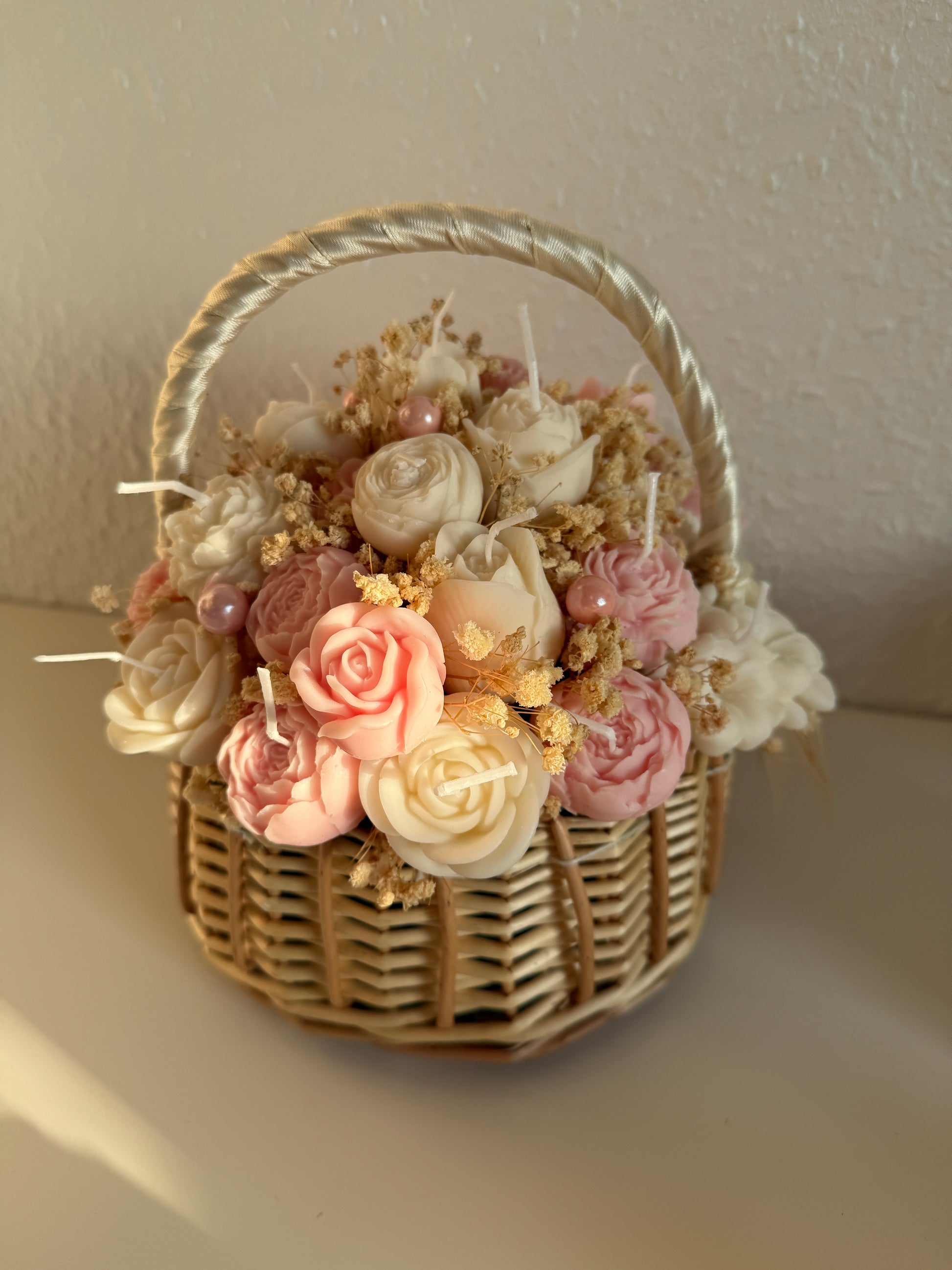 Blumen, die niemals verwelken – unser Blumenkorb ist ein liebevoll handgefertigtes Arrangement aus hochwertigem Sojawachs, das für immer blüht. Jede Blüte wird in Handarbeit gefertigt und in einem süßen Mini-Korb arrangiert – eine ganz besondere Geschenkidee, die von Herzen kommt.