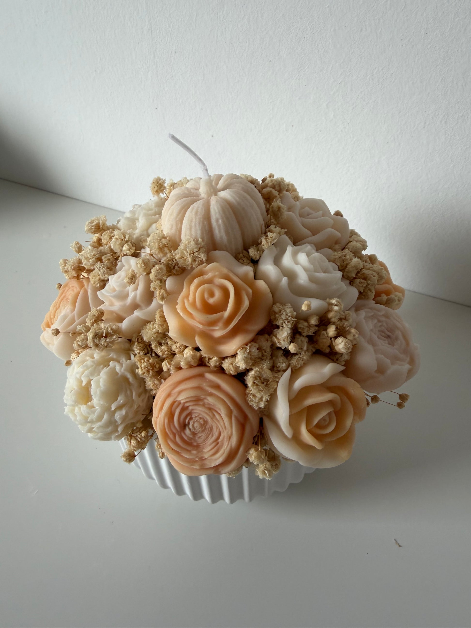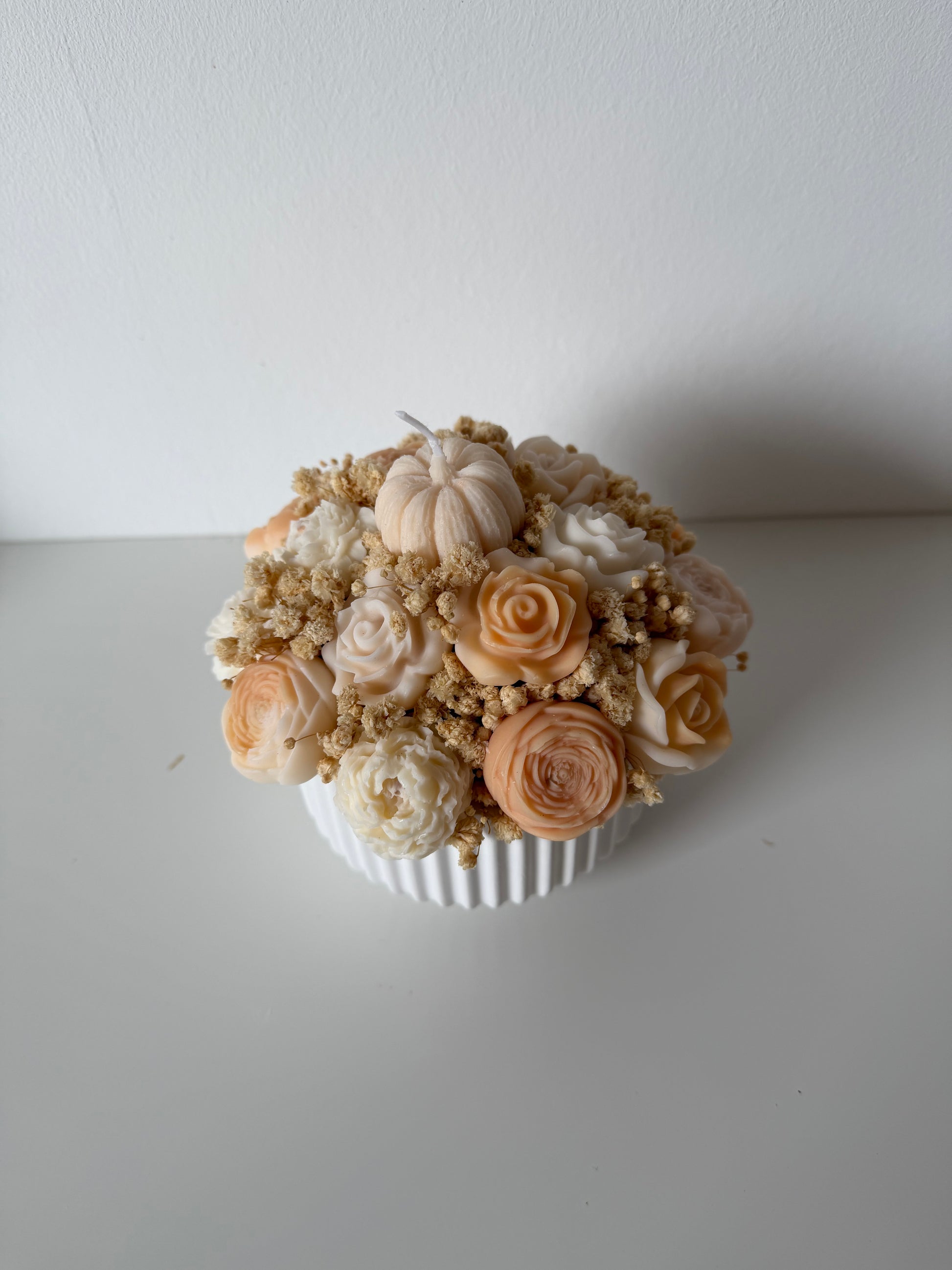 Herbststrauß im Keramikgefäß – mit Kürbis & Schleierkraut