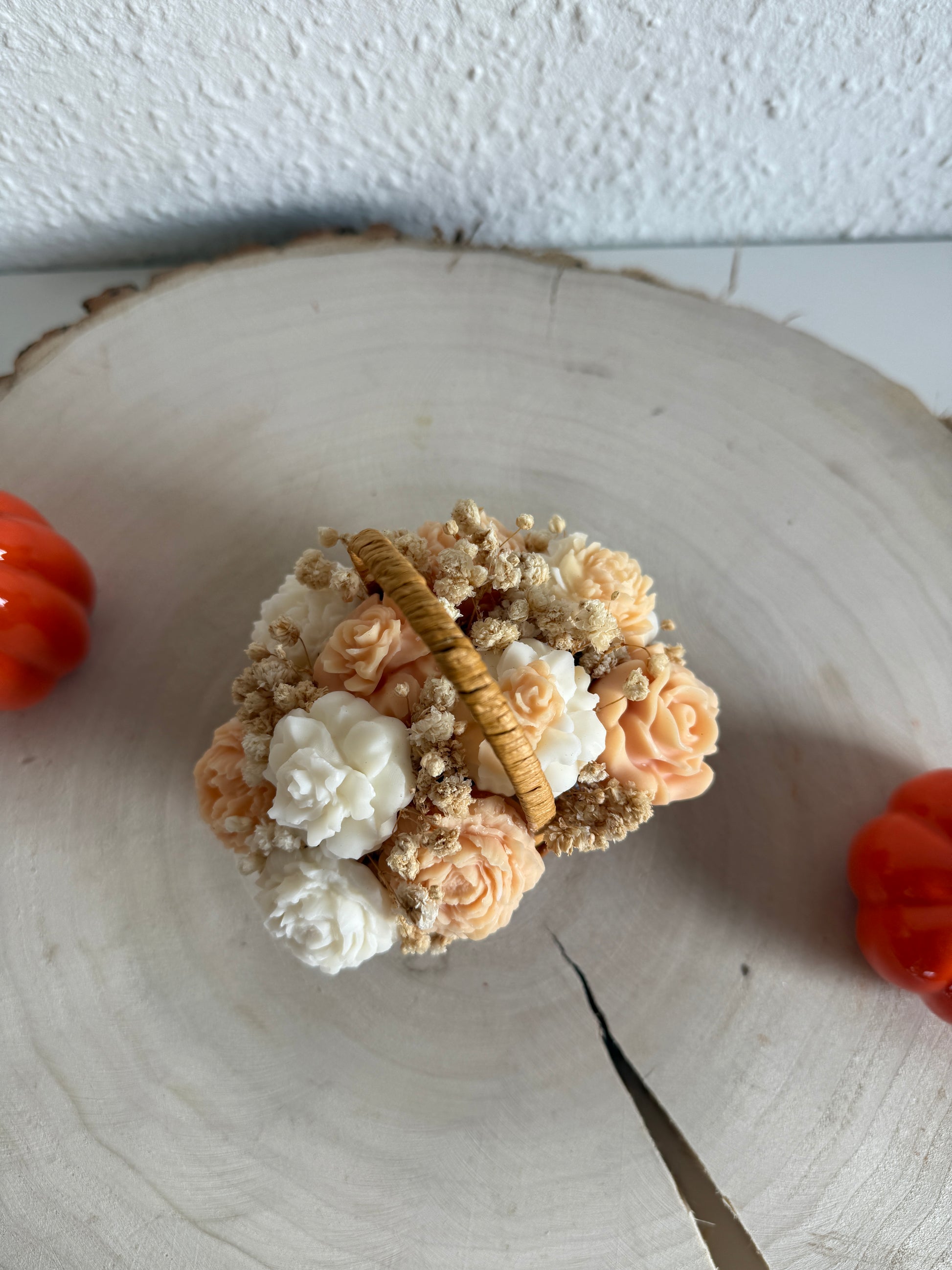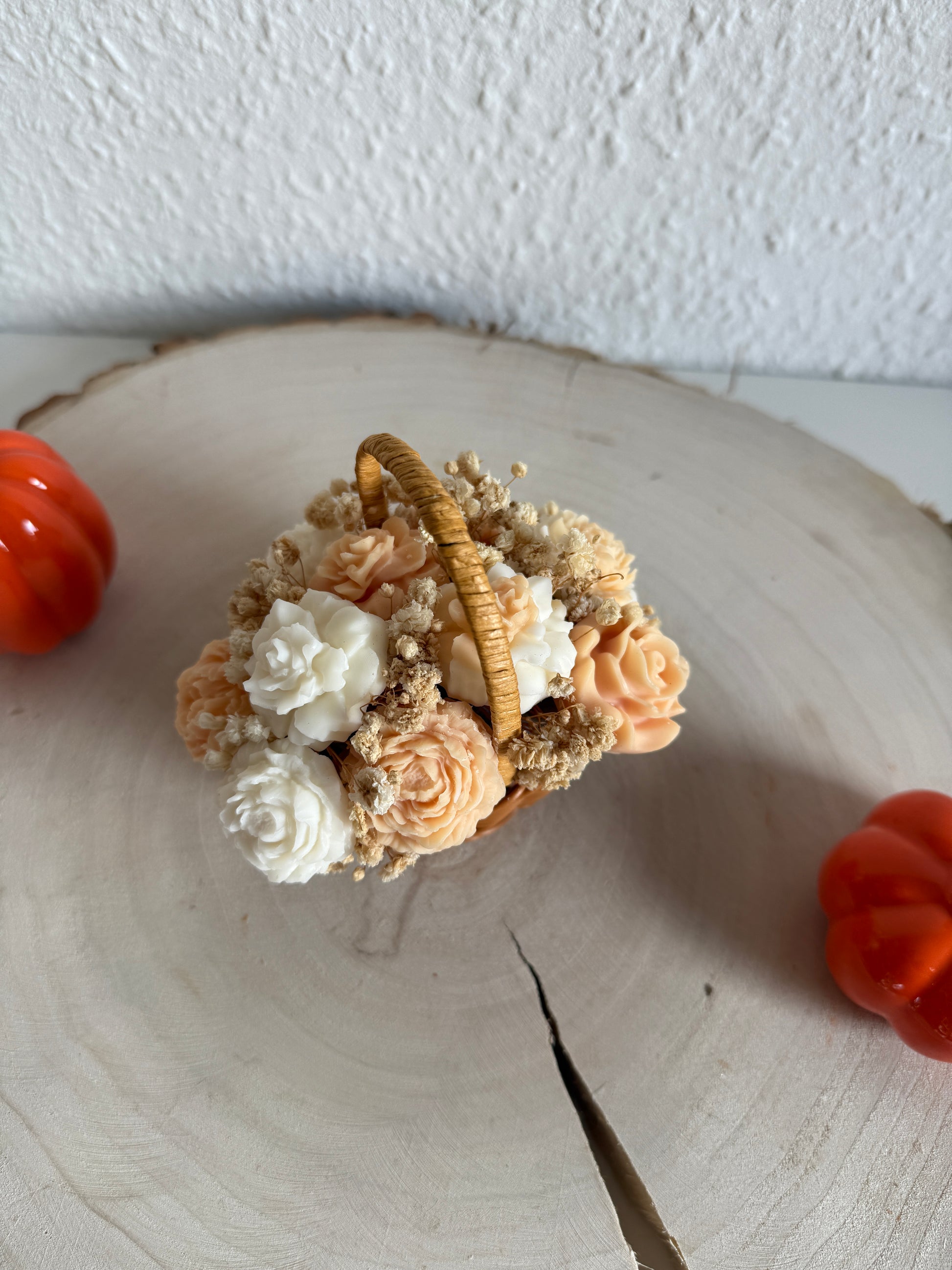 Kleiner Blumenkorb – Handgemachte Wachsblumen, die ewig halten