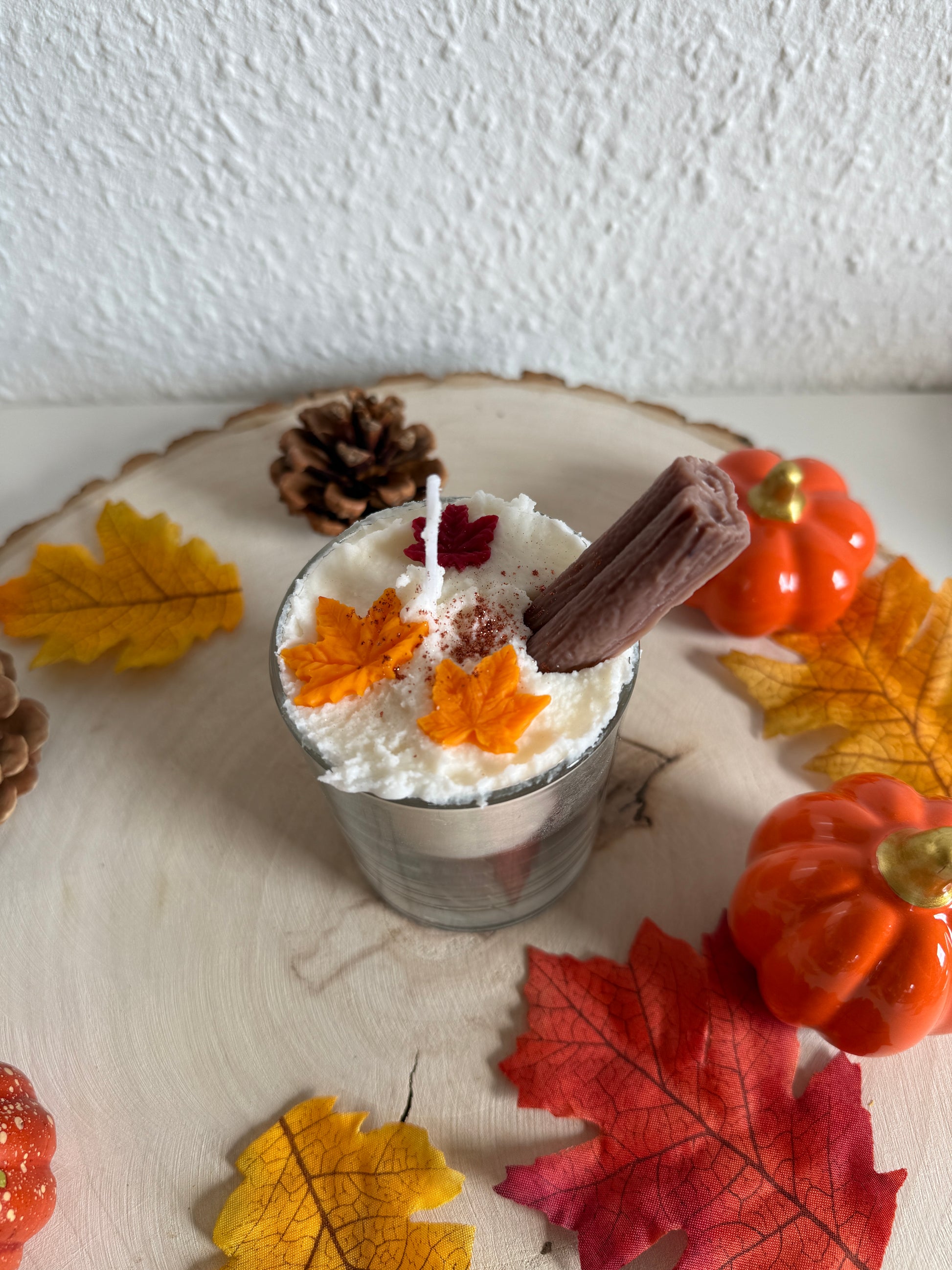 Unsere handgefertigte Pumpkin Spice Duftkerze sieht nicht nur aus wie ein cremiger Herbstkaffee mit Sahnehaube, sie duftet auch herrlich warm und würzig nach Kürbis, Zimt und einer Prise Vanille. Perfekt für gemütliche Abende, kuschelige Decken und goldene Herbsttage.